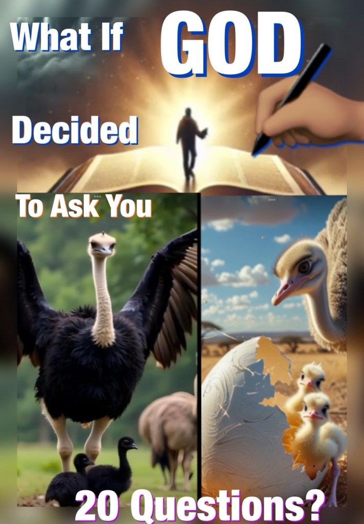 Greetings BeLoved child of THE MOST HIGH GOD YAH ELOHIM: THE CREATOR: EL SHADDAI: OMNIPOTENT: OMNIPRESENT: OMNISCIENT: JESUS CHRIST: YAHUSHA HA’MASSIACH: AGAPÈ LOVE: THE AUTHOR ✍🏽: THE WORD: THE ANSWER: THE SOURCE: THE GREAT I AM…What If GOD Decided To Ask You 20 Questions? On any topic… Nature Nurture Labor Wisdom how would you respond? What i know Is, the answer to all your life questions could be found in THE OWNERS Manual: The Bible this Is The Means Given to man, which when coupled with Prayer and Bible Study THE HOLY SPIRIT Can Educate, Bless and Instill Wisdom; even still some thing’s are not for us to know, at least not in this life(time) we will have to be okay with that… “¶“The [flightless] wings of the ostrich wave joyously; With the pinion (shackles, fetters) and plumage of love, For she leaves her eggs on the ground And warms them in the dust, Forgetting that a foot may crush them, Or that the wild beast may trample them. “She treats her young cruelly, as if they were not hers; Though her labor is in vain because she is unconcerned [for the safety of her brood], For God has made her forget wisdom, And has not given her a share of understanding.” Job 39:13-17 AMP 🦢 Job 17:4 For thou hast hid their heart from understanding: therefore shalt thou not exalt them.⏳ “And the God of peace will crush Satan under your feet shortly. The grace of our Lord Jesus Christ be with you. Amen.” Romans 16:20 “casting down arguments and every high thing that exalts itself against the knowledge of God, bringing every thought into captivity to the obedience of Christ,” II Corinthians 10:5 ⌛️ Prayer Is A Conversation With our Heavenly FATHER And ALMIGHTY GOD Having questions on: Nature Nurture Labor Wisdom Go To THE ALL KNOWING SOURCE For CPR: CHRIST PROVIDES RESOURCES (Responses and Revelations To Renew and build up your mind) Remember you are Loved beyond measure YHWH REDEEMS And RESTORES every Repentant Believer of THE WORD; our Highest Education Is Found In CHRIST. 🎓