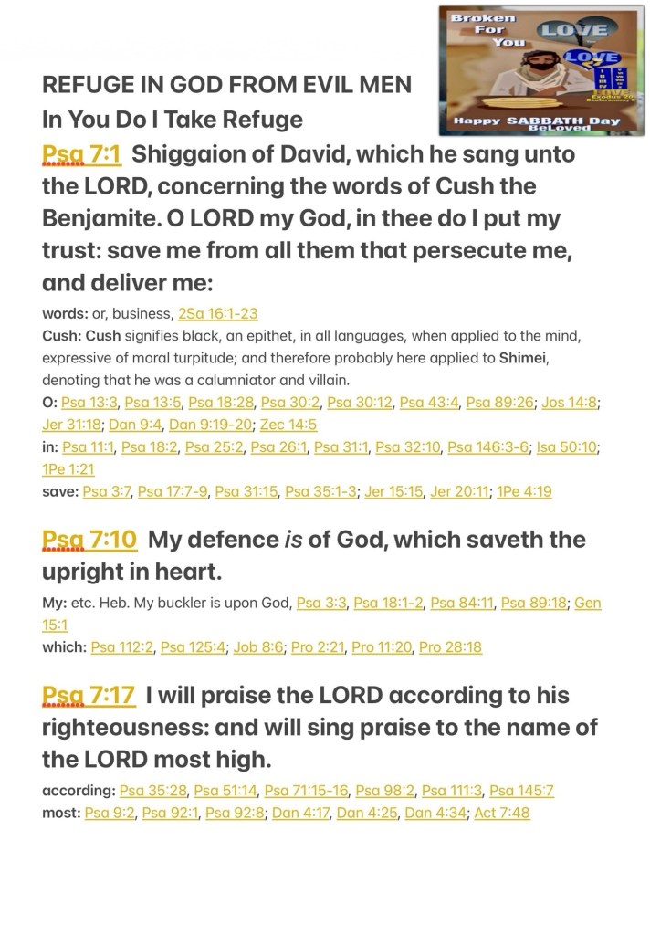 Happy Sabbath Greetings BeLoved child of THE MOST HIGH GOD ABBA YHWH: THE AUTHOR ✍🏽: THE CREATOR: THE WORD OMNIPOTENT, OMNISCIENT, OMNIPRESENT; our ADVOCATE, EMMANUEL: GOD With us, YAH ELOHIM: THE GODHEAD: THE GREAT I AM… THE ANSWER To Every Prayer For Mercy In Times Of Trouble our DELIVERER Heed THE WORD: Read: Study The Bible To Know THE FATHER And His Plan for your Deliverance: ❤️ “Take My yoke upon you and learn from Me, for I am gentle and lowly in heart, and you will find rest for your souls.” Matthew 11:29 “I will remember the works of the Lord; Surely I will remember Your wonders of old. I will also meditate on all Your work, And talk of Your deeds.” Psalms 77:11-12 Yahuah Elohai, in you do I put my trust: save me from all of them that persecute me and deliver me: ‘ So shall the assembly of the people compass you about: for their sakes therefore return you on high. I will praise Yahuah according to his righteousness: and will sing praise to the name of Yahuah Elyon. Tehilliym Psalms 7:1, 7, 17 CEPHER 🛡️ My brothers and sisters Life is hard (since The Genesis Garden situation it has to be, that was the start of Spiritual Warfare on the children of YAH But It was also the Start Of YHWH’S Plan Of Salvation; where evil was put on Notice That CHRIST FIGHTS DIFFERENTLY And That In LOVE He Was Willing To Give His LIFE to SAVE ours: That’s Part Of His Testimony) and I’m sure you have a Testimony: things you’re going through, but You Don’t Have To Drown Reach Out To THE FATHER Your DEFENSE. CHRIST Will Forever Bear The Nail Pierced Scars The Evidence Of His Affliction and The Place Where each of our names remain; I believe that, That Reality is one reason sin will Not rise up again in us or in earth made new. As for now during the meantime we’re only as Protected as we Engage THE WORD: Embodying His Character (Live The Ten Commandments): Surrendering our lives in all aspects to THE MESSIAH: Allow His PEACE: THE HOLY SPIRIT To Reside: Re Educate: ReNew: ReStore: Redeem: Replace our old ways for YAH’S WAYS so that we Will Be Ready Before JESUS CHRIST’S Return or our probation ends. We can’t allow the enemies distractions in whatever form to steal us away or steer us to another path, that said please remember you are Loved Beyond Measure By EL SHADDAI ALMIGHTY GOD His Will Is your life Spared: Saved: Made New and That We Live THE PROMISE Prepared By THE LAMB Slain from the foundation of this world; it’s been a long time coming but it’s time that we Be Found Faithful and Well Rested In CHRIST HalleluYAH!