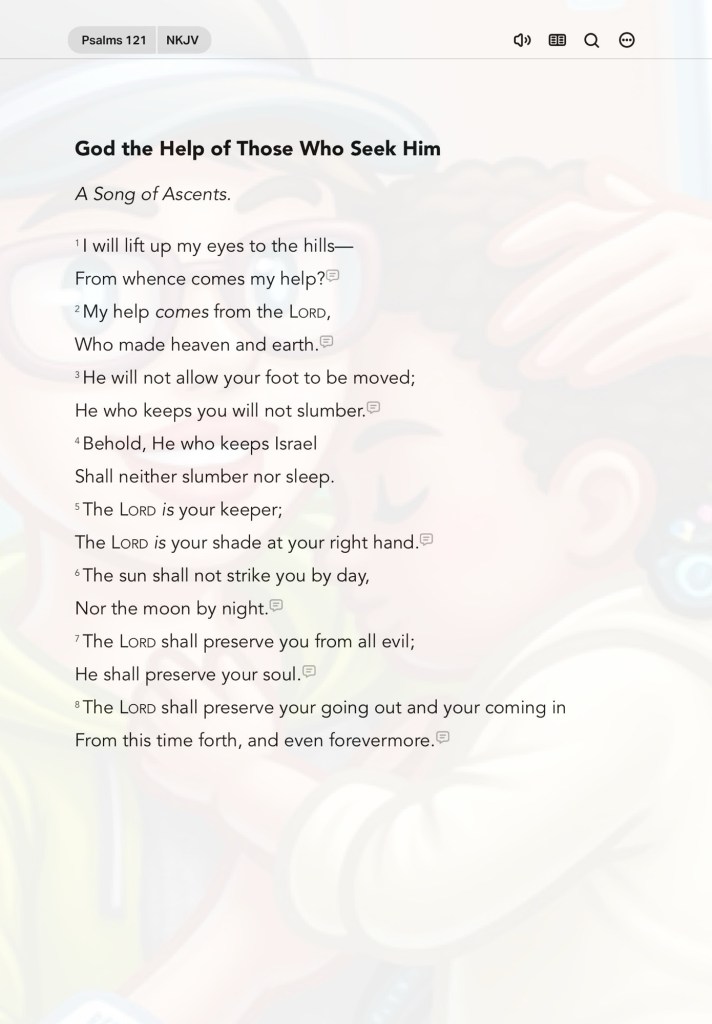 Today’s lesson Psalms 35/150, today’s verses: “giving thanks to the Father who has qualified us to be partakers of the inheritance of the saints in the light. He has delivered us from the power of darkness and conveyed us into the kingdom of the Son of His love, in whom we have redemption through His blood, the forgiveness of sins.” Colossians 1:12-14 “You prepare a table before me in the presence of my enemies; You anoint my head with oil; My cup runs over. Surely goodness and mercy shall follow me All the days of my life; And I will dwell in the house of the Lord Forever.” Psalms 23:5-6