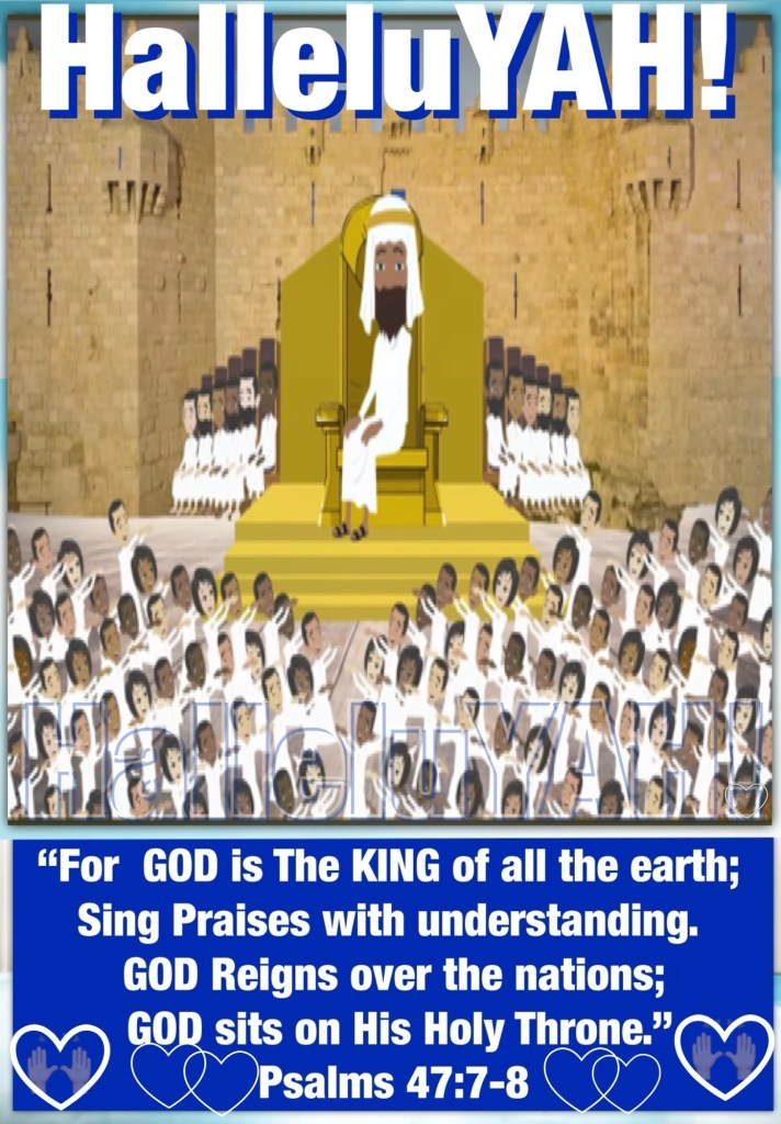 Today’s lesson Psalms 47/150, today’s verses: “And when He had removed him, He raised up for them David as king, to whom also He gave testimony and said, ‘I have found David the son of Jesse, a man after My own heart, who will do all My will.’” Acts 13:22 “Let no one despise your youth, but be an example to the believers in word, in conduct, in love, in spirit, in faith, in purity.” I Timothy 4:12 “Since you have purified your souls in obeying the truth through the Spirit in sincere love of the brethren, love one another fervently with a pure heart,” I Peter 1:22 “Let nothing be done through selfish ambition or conceit, but in lowliness of mind let each esteem others better than himself.” Philippians 2:3 ⚖️Spiritual Warfare ⚔️Pro Tips🛡️ Remember: YHWH ELOHIM IS HOLY AND UNCHANGING That Means The Change Must Be Made In You DELIVERANCE IS A GIFT Free To You But Cost Everything Be Grateful BE Stay Remain CHRIST COVERED Receive THE FATHER Plead The Blood BE CHRIST CONFIDENT GLORIFY YAH ALWAYS: BE INTENTIONAL Walk Good Do Good Be LOVE Model CHRIST CHARACTER Live Through YAH’S WORD AND LAW Wake Up PUSH Through THE LORD MOST HIGH IS AWESOME! HALLELUYAH!!