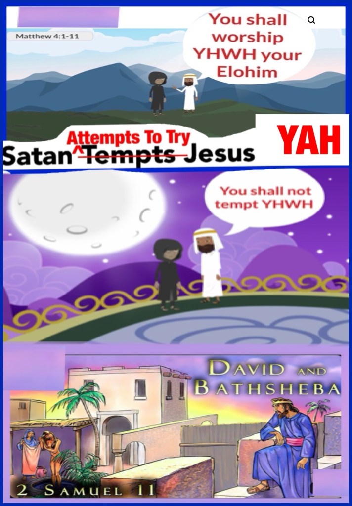 Greetings BeLoved child of THE MOST HIGH GOD ADONAI YAHUAH יהוה ELOHIYM: THE CREATOR FATHER YAH THE WORD: THE AUTHOR ✍🏽: of our hearts beats: CONTINUOUS REFUGE: PROTECTIVE HEDGE: DELIVERANCE: CHRIST🩸COVERAGE: THE GREAT I AM: THE COMMANDER ⚖️ RIGHTEOUS JUDGE JUSTICE SANCTIFIER SAVIOR: LOVING KINDNESS: STRENGTH: JESUS CHRIST YAHUSHA HA’MASSIACH: THE STANDARD THE LAW THE BANNER: AGAPÈ LOVE Personified I AM THAT I AM. HalleluYAH! CHRIST IS THE FORERUNNER THE PROPHECY FULFILLED AND THE PROPHET: THE HOLY SPIRIT WORD That Inspired The HOLY BIBLE LIFE LINE LOVE LETTER THE WAY Leading us to YHWH; just as It was in King David’s day Clear Instruction “It Is Written”: So You Would Have Strength To Overcome Temptation, in whatever shape package dress or undressed. If the enemy is so bully bold (prideful…) as to step to and Try JESUS, Don’t think for a moment he won’t Try To Test YAH Through you. 👑“Then the devil, taking Him up on a high mountain, showed Him all the kingdoms of the world in a moment of time. And the devil said to Him, “All this authority I will give You, and their glory; for this has been delivered to me, and I give it to whomever I wish. Therefore, if You will worship before me, all will be Yours.”” Luke 4:5-7 “But He answered and said,❤️ “It is written, ‘Man shall not live by bread alone, but by every word that proceeds from the mouth of God.’ ”” Matthew 4:4 🆘 CPR: Come To CHRIST PRAY REPENT Surrender All Psalms 51 style: 🩸“Have mercy on me, O God, according to Your lovingkindness; According to the greatness of Your compassion blot out my transgressions. Against You, You only, have I sinned And done that which is evil in Your sight, So that You are justified when You speak [Your sentence] And faultless in Your judgment. [Rom 3:4] Do not cast me away from Your presence And do not take Your Holy Spirit from me. Restore to me the joy of Your salvation And sustain me with a willing spirit.” Psalms 51:1, 4, 11-12 AMP ✅Silly satan you can’t tempt GOD; and certainly Not with what Is Already His {Psalms 24:1 The earth is the Lord’s, and all its fullness, The world and those who dwell therein. “And Jesus answered and said to him, ❤️“Get behind Me, Satan! For it is written, ‘You shall worship the Lord your God, and Him only you shall serve.’ ”” Luke 4:8 ⚖️ KNOW THE WORD Know your Rights and What’s Wrong It’s Been Documented THE WORD Of GOD As Found In The Bible Is our Guide “It Is Written”: So You Would Have Strength To Overcome Temptation, “It Is Written”: As Proof And An Example every life sketch is a valuable lesson, “It Is Written”: To Encourage “It Is Written”: To Explain our History: Past, Present and Future; “It Is Written”: So we won’t Be Unaware Of The overarching spiritual warfare: To Enable us to See: Repent, Stand Strong: Pick Up our SWORD And Fight (many times it’s a fight against our flesh (heart mind)). Thanks for stopping by may YAH BLESS you as you journey, you Are Loved Beyond Measure Walk Good!