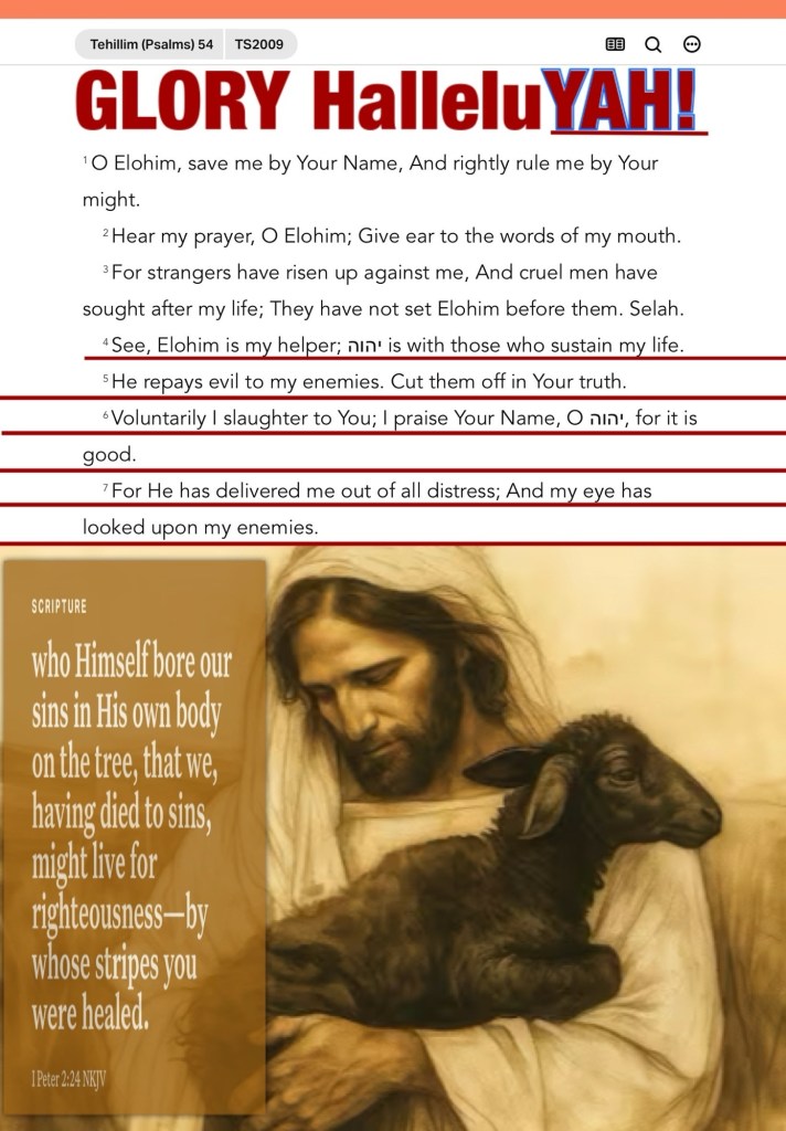 “Behold, God is my helper; The Lord is with those who uphold my life. He will repay my enemies for their evil. Cut them off in Your truth. I will freely sacrifice to You; I will praise Your name, O Lord, for it is good. For He has delivered me out of all trouble; And my eye has seen its desire upon my enemies.” Psalms 54:4-7 NKJV