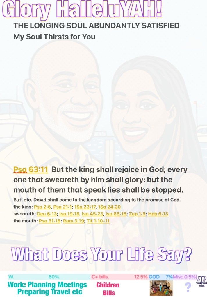 Greetings BeLoved child of THE MOST HIGH YAH ELOHIM: THE CREATOR: THE AUTHOR ✍🏽:of our heartbeat: THE COMMANDER ⚖️ THE LAW: THE RIGHTEOUS HOLY JUDGE: OMNIPOTENT OMNIPRESENT OMNISCIENT AGAPÈ LOVE: YAHUAH YIRÈH: JEHOVAH JIRÈH: THE SOURCE: THE PROVIDER … I AM THAT I AM. BeLoved are you living out of Balance? Are you Giving so much of yourself everywhere else, except where it matters most? Remember Spiritual Warfare Happens Everywhere: home: job: relationships Nothing is exempt; [And before you burnout or burn bridges please Know The Psalms are a Diary Of A Thirsty Good Man: YAH WILL PROVIDE Remember: you need Rest Life Balance (*review Exodus 20:8-11) and remember Job his story is the clearest example of Spiritual Warfare: is it any wonder that the Work that occupies so much of our Time is called a Job (?)] but Don’t Worry, GOD Is Not Interested in your lip service It’s up to us to Remember YAH IS THE SOURCE: ❤️ “For the [pagan] Gentiles eagerly seek all these things; [but do not worry,] for your heavenly Father knows that you need them. But first and most importantly seek (aim at, strive after) His kingdom and His righteousness [His way of doing and being right—the attitude and character of God], and all these things will be given to you also.” Matthew 6:32-33 AMP “The Lord restored the fortunes of Job when he prayed for his friends, and the Lord gave Job twice as much as he had before. [Deut 30:1-3; Ps 126:1, 2]” Job 42:10 “For His divine power has bestowed on us [absolutely] everything necessary for [a dynamic spiritual] life and godliness, through true and personal knowledge of Him who called us by His own glory and excellence.” 2 Peter 1:3 AMP “O God, You are my God; with deepest longing I will seek You; My soul [my life, my very self] thirsts for You, my flesh longs and sighs for You, In a dry and weary land where there is no water. So I have gazed upon You in the sanctuary, To see Your power and Your glory. [Ps 42:1, 2] Because Your lovingkindness is better than life, My lips shall praise You.” 🙌🏼 “But the king will rejoice in God; Everyone who swears by Him [honoring the true God, acknowledging His authority and majesty] will glory, For the mouths of those who speak lies will be stopped.” Psalms 63: :1-3, 11 AMP Happy Sabbath! Remember you are Blessed: Highly Favored And Loved Beyond Measure, Take Care Be Loved Walk Good!