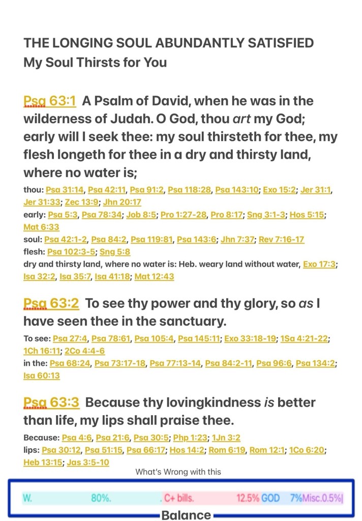 Today’s lesson Psalms 63/150, today’s verses: ❤️“‘These people draw near to Me with their mouth, And honor Me with their lips, But their heart is far from Me.” Matthew 15:8 “Jesus said to him, ❤️“Thomas, because you have seen Me, you have believed. Blessed are those who have not seen and yet have believed.”” John 20:29 “And the Lord restored Job’s losses when he prayed for his friends. Indeed the Lord gave Job twice as much as he had before.” Job 42:10 “as His divine power has given to us all things that pertain to life and godliness, through the knowledge of Him who called us by glory and virtue,” II Peter 1:3 NKJV