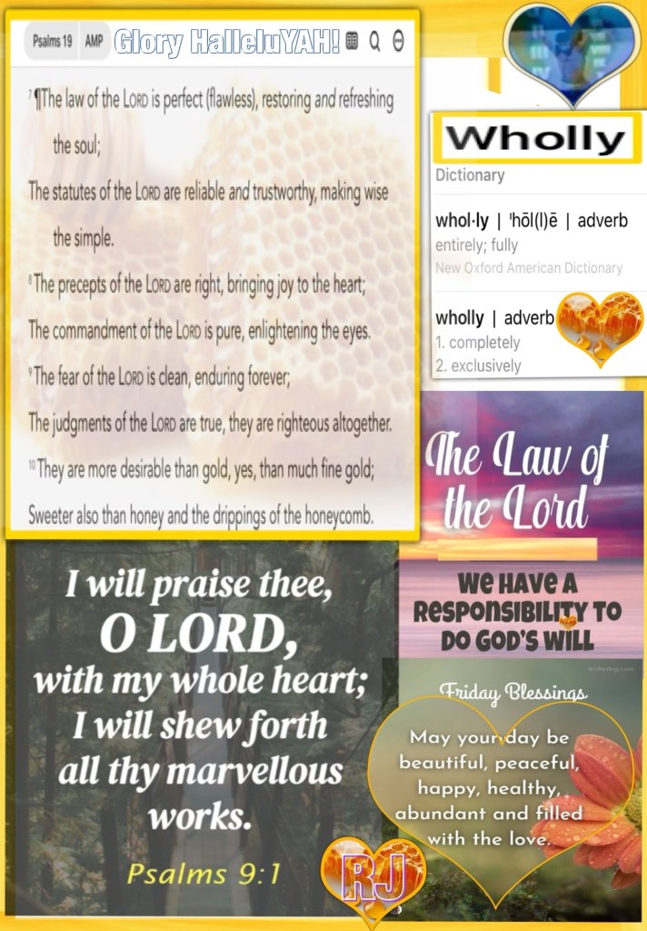 Greetings BeLoved child Of THE MOST HIGH ETERNAL FATHER { יהוה YAH ELOHIM } THE CREATOR THE AUTHOR ✍🏽 AND AUTHORITY: GOD IS I AM THAT I AM: AGAPÈ LOVE INCARNATE YAHUSHA HA’MASSIACH JESUS CHRIST THE WORD OMNISCIENT OMNIPRESENT OMNIPOTENT. The Bible Is THE LIFE MANUAL Spiritual War Fact: you were created to Become HOLY: WHOLLY SET APART CHOSEN: To Do The Works YAH Has for you that Will Transform you into someone who Grows IN To HOLINESS (THE FATHER) CHRIST LIKENESS; as you can imagine the enemy sends distractions of all kinds to Thwart keep you away from Becoming HOLY: WHOLLY SET APART CHOSEN: Intentionally Loving and Living To Do YAH’S Will; as The Bible Advises It’s Preparation Day use the Bible daily Building your spiritual knowledge, appetite, muscles, ability to hear from GOD and most importantly relationship with ALMIGHTY GOD. HalleluYAH! Remember YAH Wants To See Himself In you; Take Some Time And Spend It With GOD He’s Waiting, Willing, Listening: “So faith comes from hearing [what is told], and what is heard comes by the [preaching of the] message concerning Christ.” Romans 10:17 AMP ❤️ “But first and most importantly seek (aim at, strive after) His kingdom and His righteousness [His way of doing and being right—the attitude and character of God], and all these things will be given to you also.” Matthew 6:33 AMP 🚶♂️“Therefore, since we have these [great and wonderful] promises, beloved, let us cleanse ourselves from everything that contaminates body and spirit, completing holiness [living a consecrated life—a life set apart for God’s purpose] in the fear of God.” 2 Corinthians 7:1 “By this we know [and have come to understand the depth and essence of His precious] love: that He [willingly] laid down His life for us [because He loved us]. And we ought to lay down our lives for the believers.” 1 John 3:16 AMP 🙌🏼HalleluYAH!🙌🏼“Praise the Lord! (Hallelujah!) I will give thanks to the Lord with all my heart, In the company of the upright and in the congregation. He has given food to those who fear Him [with awe-inspired reverence]; He will remember His covenant forever. [Deut 10:12; Ps 96:9] He has sent redemption to His people; He has ordained His covenant forever; Holy and awesome is His name—[inspiring reverence and godly fear]. The [reverent] fear of the Lord is the beginning (the prerequisite, the absolute essential, the alphabet) of wisdom; A good understanding and a teachable heart are possessed by all those who do the will of the Lord; His praise endures forever. [Job 28:28; Prov 1:7; Matt 22:37, 38; Rev 14:7]” Psalms 111:1, 5, 9-10 AMP 💝 Spiritual Warfare Litmus Test: With All things if “it” doesn’t line up with THE WORD Of GOD {CHARACTER: NATURE: LAW] {Test The Spirit(s) 1 John 4:1; at the end of Time we will find that The Test, Every Test was about Worship: GOD’S WORD vs man’s word; it’s a choice Choose CHRIST: Psalms 105:8 He hath remembered his covenant for ever, the word which he commanded to a thousand generations. THE WORD LIVES It’s time we Get Ready To Be HOLY: WHOLLY SET APART CHOSEN: HOLY: SET APART BY YAH, WHOLLY: Completely SET APART: sacred (physically pure, morally blameless or religious, ceremonially consecrated) By THE FATHER {CHOSEN: Especially Set Aside Dedicated By EL SHADDAI For His Kingdom Work. CHRIST CHOSE You, Will You Choose Him? Worship THE CREATOR The Sabbath Is Still In Full Effect 🌅 Sabbath Starts At Sunset; Live In His LOVE Walk Good Be Love!