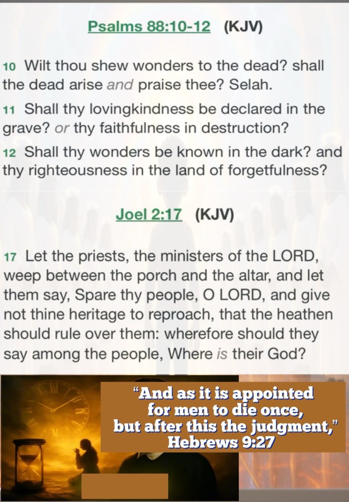 “Not unto us, O Lord, not unto us, But to Your name give glory, Because of Your mercy, Because of Your truth. Why should the Gentiles say, “So where is their God?” You who fear the Lord, trust in the Lord; He is their help and their shield. The dead do not praise the Lord, Nor any who go down into silence.” Psalms 115:1-2, 11, 17 NKJV
