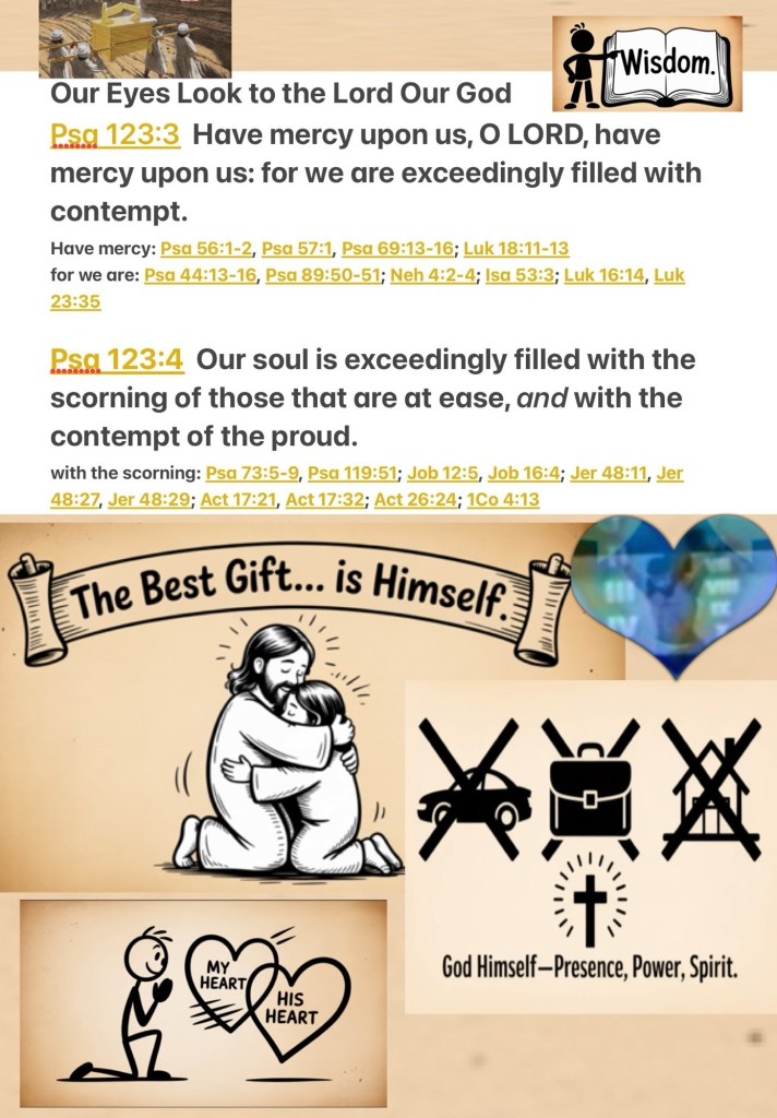 “Have mercy on us, O Lord, have mercy on us! For we are exceedingly filled with contempt. Our soul is exceedingly filled With the scorn of those who are at ease, With the contempt of the proud.” Psalms 123:3-4 NKJV