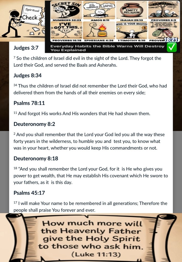 Today’s lesson Psalms 123/150, today’s verses: ❤️“Jesus said to him, “I am the way, the truth, and the life. No one comes to the Father except through Me.” John 14:6 “Confess your trespasses to one another, and pray for one another, that you may be healed. The effective, fervent prayer of a righteous man avails much.” James 5:16 NKJV 🚶♂️ “Be strong and of good courage, for to this people you shall divide as an inheritance the land which I swore to their fathers to give them. Only be strong and very courageous, that you may observe to do according to all the law which Moses My servant commanded you; do not turn from it to the right hand or to the left, that you may prosper wherever you go.” Joshua 1:6-7 “And the Word became flesh and dwelt among us, and we beheld His glory, the glory as of the only begotten of the Father, full of grace and truth.” John 1:14 NKJV 💎 How can we so easily Forget What GOD Has Done Isaiah 53:3 He is despised and rejected of men; a man of sorrows, and acquainted with grief: and we hid as it were our faces from him; he was despised, and we esteemed him not. Luke 23:35 And the people stood beholding. And the rulers also with them derided him, saying, He saved others; let him save himself, if he be Christ, the chosen of God. 1 Corinthians 4:13 Being defamed, we intreat: we are made as the filth of the world, and are the offscouring of all things unto this day. 💎Wake Up Say Thank You To EL SHADDAI! Don’t Forget: You Are LOVED Beyond Measure Blessed and Highly Favored Be Loved Stay Locked In To THE CREATOR our GUARD: DEFENSE Against The enemy {his agents schemes devices} Situation Critical: Spiritual Amnesia Sin Stinks (The Stench Is Death) This Requires 🩺 CPR: CHRIST PROVIDES RESUSCITATION 🙌🏼GLORY HALLELUJAH!