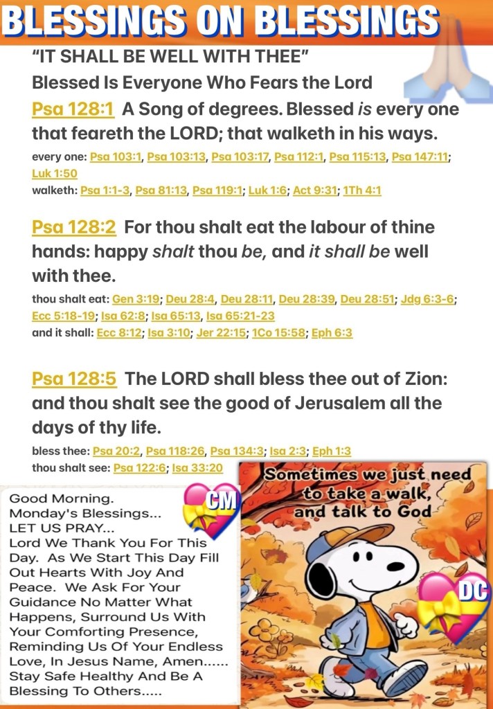 Greetings BeLoved child Of THE MOST HIGH GOD יהוה YAH ELOHIM : THE CREATOR: THE AUTHOR ✍🏽 AND AUTHORITY: THE OMNIPRESENT OMNISCIENT OMNIPOTENT ADONAI YHWH THE CAPTAIN OF HEAVENLY HOST JESUS CHRIST THE WORD THE SAVIOR FROM WHOM ALL BLESSINGS FLOW HALLELUJAH! Welcome to day 2 of another week GOD IS TO BE PRAISED HALLELUYAH! Spiritual War Fact: The war is real but we Can Be Victorious if we Remain KEPT BY CHRIST: BLESSED BY THE WORD THE SAVIOR: John 10:29-30 ❤️My Father, which gave them me, is greater than all; and no man is able to pluck them out of my Father’s hand. I and my Father are one. 💎“Blessed [happy and sheltered by God’s favor] is everyone who fears the Lord [and worships Him with obedience], Who walks in His ways and lives according to His commandments. [Ps 1:1, 2] For you shall eat the fruit of [the labor of] your hands, You will be happy and blessed and it will be well with you. ¶May the Lord bless you from Zion [His holy mountain], And may you see the prosperity of Jerusalem all the days of your life;” Psalms 128:1-2, 5 AMP Ephesians 1:3 Blessed be the God and Father of our Lord Jesus Christ, who hath blessed us with all spiritual blessings in heavenly places in Christ: Ecclesiastes 8:12 Though a sinner do evil an hundred times, and his days be prolonged, yet surely I know that it shall be well with them that fear God, which fear before him: