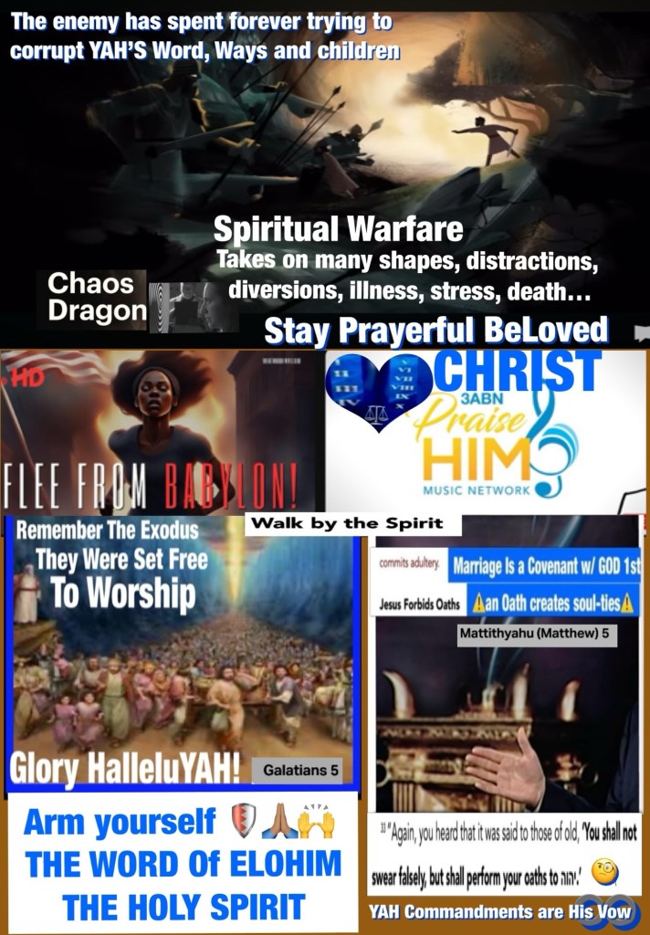 Greetings BeLoved child of THE MOST HIGH יהוה YHWH ELOHIM: THE CREATOR: AUTHOR ✍🏽 AUTHORITY: OMNIPRESENT: THE GREAT I AM THAT I AM: THE LAW RIGHTEOUS JUDGE JUSTICE TRUTH: AGAPÈ LOVE: THE HOLY SET APART SPIRIT: THE RUACH HAQUODESH: ADONAI יהושע YAHUSHA HA’MASSIACH JESUS CHRIST: OMNIPOTENT OMNISCIENT THE ATONEMENT, THE ALTAR, THE SACRIFICE, THE INTERCESSION WISDOM DISCERNMENT THE WORD Made Flesh To Deliver us; Blessed new week my brothers and sisters welcome to Bible Class my hope is we come to a Greater Knowledge Of our Heavenly FATHER By Seeking To See: Know: Discover Him On Every page In The Holy Bible Scriptures To Let YAH ELOHIM Teach: Enlighten Redeem Secure The Saints (us) His children. 🛡️ “That you may exercise discrimination and discretion (good judgment), And your lips may reserve knowledge and answer wisely [to temptation]. Let your way [in life] be far from her, And do not go near the door of her house [avoid even being near the places of temptation], [Prov 4:15; Rom 16:17; 1 Thess 5:19-22] ¶Drink water from your own cistern [of a pure marriage relationship] And fresh running water from your own well. Should your springs (children) be dispersed, As streams of water in the streets? For the ways of man are directly before the eyes of the Lord, And He carefully watches all of his paths [all of his comings and goings]. [2 Chr 16:9; Job 31:4; 34:21; Prov 15:3; Jer 16:17; Hos 7:2; Heb 4:13]” Proverbs 5:2, 8, 15-16, 21 AMP ⚔️Daily we’re dealing in Spiritual Warfare and the enemy knows that The UnCovered child is more easily accessible for him to play with or for him to entice to sin (which separates us from YAH ALMIGHTY) so we walk ourselves into greater sins (leading to cursing—-> death) Everyday we are either making gains or falling short, while the enemy preys on us: “How shall I curse, whom God hath not cursed? Or how shall I defy, whom the LORD hath not defied?” Numbers 23:8 KJV ⚠️ I repeat for the ones in the back… the enemy is Not your friend (he’s the spirit that seeks your harm)⚠️ ““How shall I curse those whom God has not cursed? Or how can I [violently] denounce those the Lord has not denounced?” Numbers 23:8 AMP Pay Attention THE WORD IS our GUIDE: DEFENSE: SAVIOR: INTERCESSOR ❤️““I do not pray for these alone [it is not for their sake only that I make this request], but also for [all] those who [will ever] believe and trust in Me through their message,” John 17:20 “In peace [and with a tranquil heart] I will both lie down and sleep, For You alone, O Lord, make me dwell in safety and confident trust.” Psalms 4:8 AMP 🚶♂️ “The Light shines on in the darkness, and the darkness did not understand it or overpower it or appropriate it or absorb it [and is unreceptive to it]. [Gen 1:3]” John 1:5 “For with God nothing [is or ever] shall be impossible.”” Luke 1:37 AMP ⚠️ Spiritual War Fact: Real Life Has Real Consequences: BLESSINGS Curses And SoulTies; in life there Is a Spiritual Nature to everything we experience, most of which many of us remain Ignorant in the face of certain Calamities brought on because of Sin: Today we Will Examine The Perils Of Adultery: Pitfalls Of Immorality: Avoiding Sexual Immorality “Like the sparrow in her wandering, like the swallow in her flying, So the curse without cause does not come and alight [on the undeserving]. [Num 23:8]” Proverbs 26:2 AMP 🤔 or maybe it’s better stated like this: “As the bird by wandering, as the swallow by flying, So the curse causeless shall not come.” Proverbs 26:2 KJV STAY CHRIST COVERED CHRIST CONNECTED HIGHLY FAVORED: BLESSED “Hebron therefore became the inheritance of Caleb the son of Jephunneh the Kenizzite to this day, because he wholly followed the Lord God of Israel”. Joshua 14:14 🤔 Follow YHWH Walk In BLESSINGS: Side Step or Avoid Curses And (Negative) SoulTies… *the videos below highlight Bible Verses speaking more to the title BLESSINGS Curses And SoulTies, Stay Informed Walk Good Be Loved.
