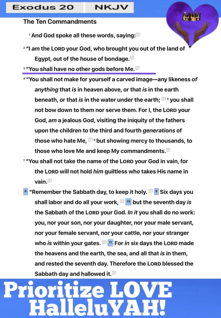 Greetings BeLoved child of THE MOST HIGH GOD: יהוה YAHUAH ELOHIYM: THE CREATOR: AUTHOR ✍🏽 AUTHORITY: OMNIPOTENT OMNISCIENT OMNIPRESENT: MESSIAH יהושע YAHUSHA JESUS CHRIST: THE ONLY BEGOTTEN SON: ABBA YAH ELOHIM THE WORD OF TRUTH THE STANDARD: THE LAW EMBODIED: THE HOLY SET APART SPIRIT THE REFINER COMFORTER COUNSELOR JUDGE JUSTICE TEACHER: WISDOM: DISCERNMENT: THE ANOINTING THE SAVIOR AGAPÈ LOVE: PERSONIFIED; Whatever you do in this life Prioritize LOVE: Proverbs 8:17 I love them that love me; and those that seek me early shall find me. ❤️“But seek first the kingdom of God and His righteousness, and all these things shall be added to you.” Matthew 6:33 [1 Kin. 3:13; Luke 12:31: (1 Tim. 4:8)] NKJV Matthew 7:7❤️Ask, and it shall be given you; seek, and ye shall find; knock, and it shall be opened unto you: “The watchmen who go about the city found me, to whom I said, “Have you seen the beloved of my being?”” Shir haShirim (Song of Songs) 3:3 TS2009 Romans 13:11 And that, knowing the time, that now it is high time to awake out of sleep: for now is our salvation nearer than when we believed. John 20:15 Jesus saith unto her,❤️ Woman, why weepest thou? whom seekest thou? She, supposing him to be the gardener, saith unto him, Sir, if thou have borne him hence, tell me where thou hast laid him, and I will take him away. 💕Prioritize LOVE 💕 “All things were made and came into existence through Him; and without Him not even one thing was made that has come into being. In Him was life [and the power to bestow life], and the life was the Light of men.” John 1:3-4 “For the word of God is living and active and full of power [making it operative, energizing, and effective]. It is sharper than any two-edged sword, penetrating as far as the division of the soul and spirit [the completeness of a person], and of both joints and marrow [the deepest parts of our nature], exposing and judging the very thoughts and intentions of the heart.” Hebrews 4:12 AMP 🚶♂️ “For God did not give us a spirit of timidity or cowardice or fear, but [He has given us a spirit] of power and of love and of sound judgment and personal discipline [abilities that result in a calm, well-balanced mind and self-control].” 2 Timothy 1:7 “because if you acknowledge and confess with your mouth that Jesus is Lord [recognizing His power, authority, and majesty as God], and believe in your heart that God raised Him from the dead, you will be saved.” Romans 10:9 AMP ““I said ‘So I must arise now and go out into the city; Into the streets and into the squares [places I do not know] I must seek him whom my soul loves.’ I sought him but I did not find him. “The watchmen who go around the city found me, And I said, ‘Have you seen him whom my soul loves?’ “Scarcely had I passed them When I found him whom my soul loves. I held on to him and would not let him go Until I had brought him to my mother’s house, And into the chamber of her who conceived me.” [Rom 8:35; 1 Pet 2:25]” Song of Solomon 3:2-4 AMP Prioritize LOVE and Be Loved HalleluYAH! Happy Sabbath have a Richly Blessed Beautiful Day Take Care Walk Good. 1 Corinthians 15:34 Awake to righteousness, and sin not; for some have not the knowledge of God: I speak this to your shame.