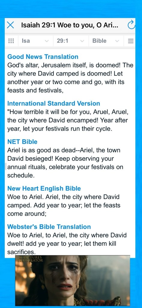 ““Woe to Ariel, to Ariel, the city where David dwelt! Add year to year; Let feasts come around. I will encamp against you all around, I will lay siege against you with a mound, And I will raise siegeworks against you. For the Lord has poured out on you The spirit of deep sleep, And has closed your eyes, namely, the prophets; And He has covered your heads, namely, the seers. Therefore the Lord said: “Inasmuch as these people draw near with their mouths And honor Me with their lips, But have removed their hearts far from Me, And their fear toward Me is taught by the commandment of men,” Isaiah 29:1, 3, 10, 13 NKJV