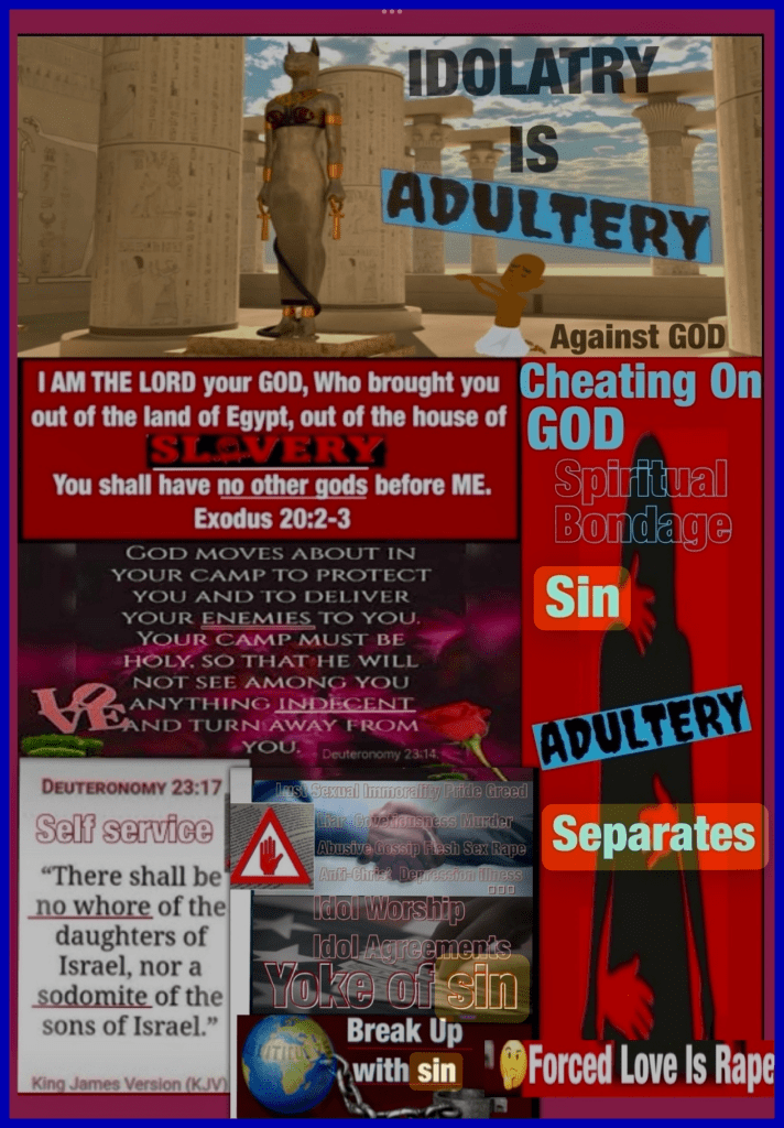Greetings BeLoved child of THE MOST HIGH יהוה YAHUAH ELOHIM: THE CREATOR: AUTHOR ✍🏽 AUTHORITY: THE COMMANDER MESSIAH יהושע YAHUSHA JESUS CHRIST: THE WORD: THE LAW JUDGE JUSTICE TRUTH ETERNAL SACRIFICE SANCTIFIER REFINER ANOINTED REDEEMER SALVATION WARRIOR THE RUACH HA’QUODESH BREATH OF LIFE THE HOLY SET APART SPIRIT: ALPHA OMEGA THE WAY AGAPÈ LOVE: LOVING KINDNESS COMPASSION STRENGTH PEACE HEALING FAVOR BLESSINGS RIGHTEOUSNESS RENEWAL DELIVERANCE THE HUSBANDMAN LORD OF HOSTS ABBA YAH COMFORTER COVER(ING) THE FRONT + REAR GUARD (Y)JEHOVAH (Y)JIRÉH THE PROVIDER LIVING WATERS SOURCE: I AM THAT I AM HEAD Of Household: THE GOOD SHEPHERD: YHWH GOD The REASON For Corporate WORSHIP THE TEN COMMANDMENTS ARE His STANDARD And VOW: YAH IS A HUSBAND Hurt By Sin: Idolatry Is Adultery Against GOD. GOD IS A HOLY CONSUMING FIRE Sin Must Cease In His Presence. Prophetically CHRIST’ Bride Is The Church; YAH Condemns All Sin, He Is Returning For A Woman Without Sin. ““But come here, you sons of a sorceress [raised in deception and superstition], Offspring of an adulterer and a prostitute. “Of whom do you make fun? Against whom do you open wide your mouth And stick out your tongue? Are you not children of rebellion (sin), Offspring of deceit, “Upon a high and lofty mountain You have [openly and shamelessly] made your [idolatrous and adulterous] bed; Even there you went up to offer sacrifice [to idols, in spiritual unfaithfulness to Me]. “Behind the door and the doorpost You have set up your [pagan] symbol; Indeed, far removed from Me, you have uncovered yourself, And have gone up and made your bed wide. And you have made a [new] agreement for yourself with the adulterers, You have loved their bed, You have looked [with passion] on their manhood. [Deut 6:5, 6, 9; 11:18, 20] “You have gone to the king [of a pagan land] with oil And increased your perfumes; You have sent your messengers a great distance And made them go down to Sheol (the realm of the dead). “When you cry out [for help], let your [ridiculous] collection of idols save you. But the wind will carry them all away, A [mere] breath will take them. But he who takes refuge in Me will possess the land [Judea] And will inherit My holy mountain.” [Ps 37:9, 11; 69:35, 36; Is 49:8; Matt 5:5; Heb 12:22] For the high and exalted One He who inhabits eternity, Whose name is Holy says this, “I dwell on the high and holy place, But also with the contrite and humble in spirit In order to revive the spirit of the humble And to revive the heart of the contrite [overcome with sorrow for sin]. [Matt 5:3]” Isaiah 57:3-4, 7-9, 13, 15 AMP YAH IS A HUSBAND Hurt By Sin: Idolatry Is Adultery Against GOD: Repent: BREAK UP With Sin! Ever since Genesis there has been a voice: the voice of the enemy: the counterfeit “god”: the world that exists to counter THE PURE WORD Of יהוה BeLoved this is why we do Bible Study To Know CHRIST for ourselves and Be Ready: Model CHRIST: LIVE IN HIS LOVE Be Loved