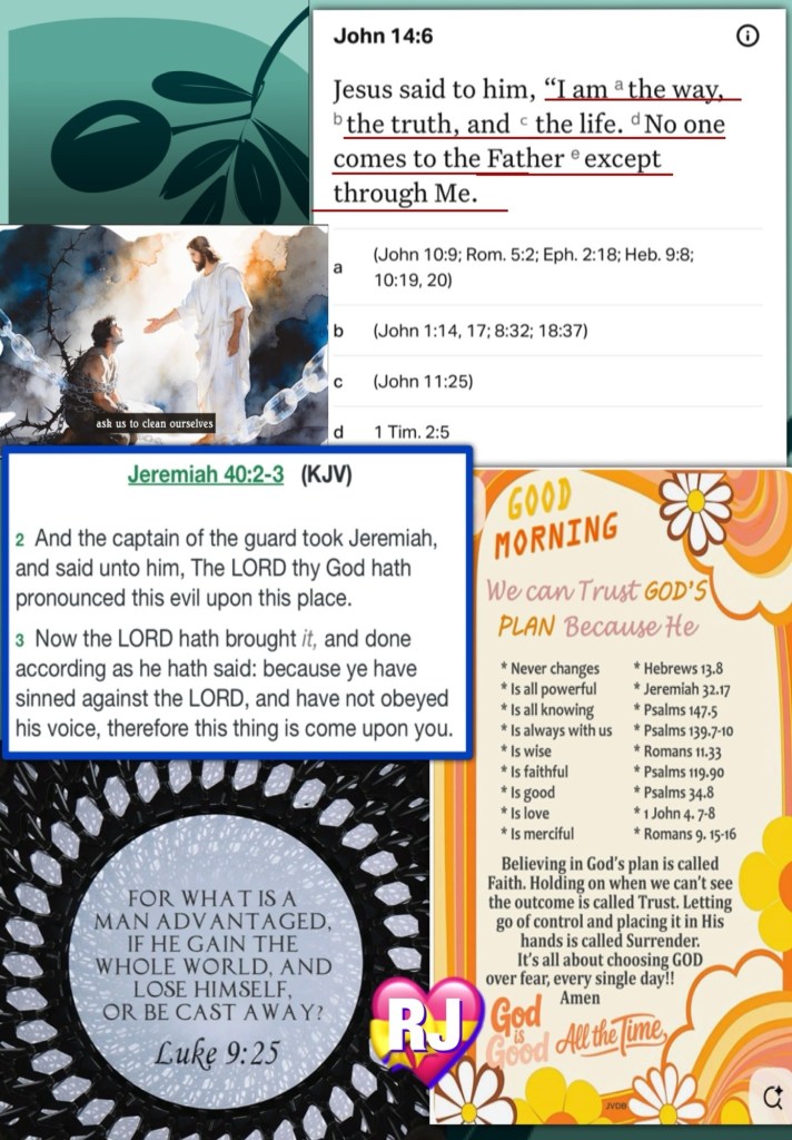 Today’s lesson Jeremiah 22/52, today’s verses: “Praise Yah! Praise Ěl in His set-apart place; Praise Him in His mighty expanse! Praise Him for His mighty acts; Praise Him according to His excellent greatness! Praise Him with the blowing of a shophar; Praise Him with the harp and lyre! Praise Him with tambourine and dance; Praise Him with stringed instruments and flutes! Praise Him with sounding cymbals; Praise Him with resounding cymbals! Let all that has breath praise Yah. Praise Yah!” Tehillim (Psalms) 150:1-6 TS2009 “But I do not consider my life as something of value or dear to me, so that I may [with joy] finish my course and the ministry which I received from the Lord Jesus, to testify faithfully of the good news of God’s [precious, undeserved] grace [which makes us free of the guilt of sin and grants us eternal life].” Acts 20:24 AMP 🚶♂️ “He was teaching day after day in the temple [porches and courts]; but the chief priests and scribes and the leading men among the people were seeking [a way] to put Him to death, and they could not find anything that they could do, for all the people [stayed close to Him and] were hanging on to every word He said.” Luke 19:47-48 “The next day he saw Jesus coming to him and said, “Look! The Lamb of God who takes away the sin of the world! [Ex 12:3; Is 53:7]” John 1:29 AMP🛡️ I’m well aware of what Time It Is {*“Holy Week”}; the more I Pray for Wisdom: Insight: Leading of THE HOLY SPIRIT Engage In Bible Study, check in with The Watchmen and look around, I’ve noticed the things I thought even a few years ago I feel differently now; So when a specific church/ organization institutes: instructs the church body in Traditions Contrary To THE WORD As Expressed In The Bible In today’s economy, I must pause and Acknowledge my REDEEMER “They will wage war against the Lamb (Christ), and the Lamb will triumph and conquer them, because He is Lord of Lords and King of kings, and those who are with Him and on His side are the called and chosen (elect) and faithful.” [Dan 2:47; 1 Tim 6:15; Rev 19:16]” Revelation 17:14 AMP and Repent