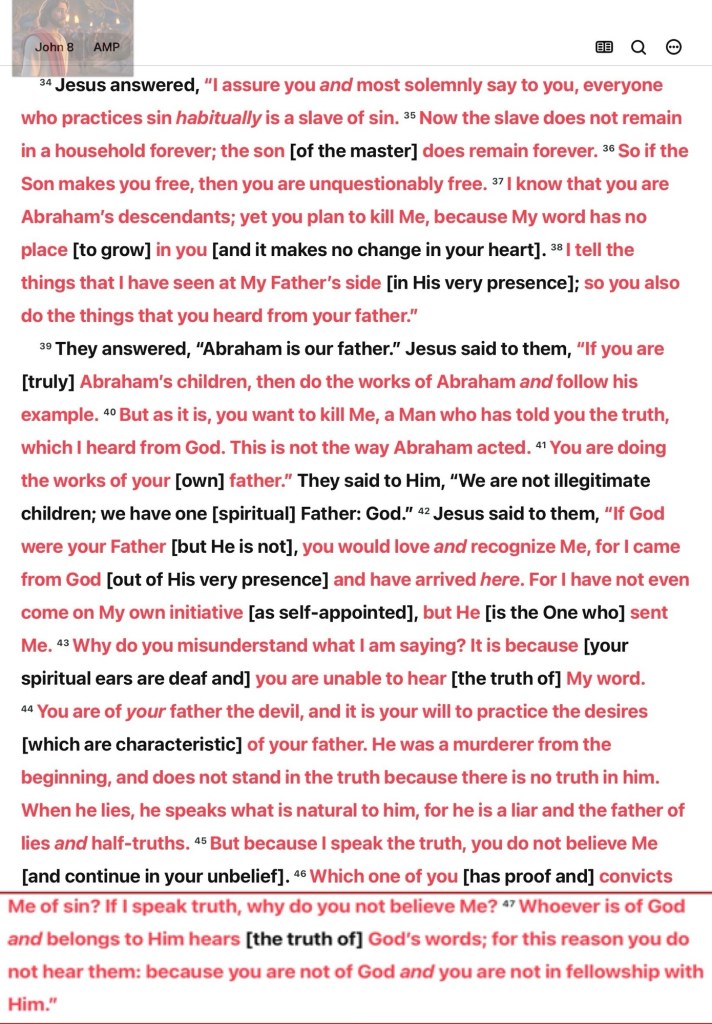 Greetings BeLoved children of THE OMNIPOTENT OMNISCIENT OMNIPRESENT MOST HIGH GOD יהוה YAHUAH ELOHIM: THE CREATOR: THE LAW: AUTHOR ✍🏽 AUTHORITY: THE COMMANDER MESSIAH יהושע YAHUSHA SAVIOR ETERNAL SACRIFICE ANOINTED RIGHTEOUS REDEEMER: THE HOLY SET APART SPIRIT THE SABATISMOS REST COMFORT PEACE THE BREATH OF LIFE THE PASCAL LAMB I like to remind you and myself of The Many Wonderful Attributes Of our AGAPÈ LOVING ALMIGHTY GOD In so doing we can more easily Discern His Character Voice etc from the noise: clamor posing and or counterfeiting The Nature Of our Heavenly FATHER Therefore my encouragement is we Seek THE WORD Choose TRUTH Through Vigorous Daily Bible Study To Know THE TRUTH Know Him And Be Known By Him; To Be Able To Rebuke The counterfeits confusion and false prophecies around us, to speak The Truth In Love That we All might Be Saved because The Uncomfortable TRUTH Is Always All Ways Better Than To Trust In A Lie {or the father of lies ] Matthew 24:4-5 And Jesus answered and said unto them, ❤️ Take heed that no man deceive you. For many shall come in my name, saying, I am Christ; and shall deceive many. 🛡️ “For thus says the Lord of hosts, the God of Israel, ‘Do not let your [false] prophets who are among you and your diviners deceive you; pay no attention and attach no significance to the dreams which they dream or to yours, for they prophesy falsely to you in My Name. I have not sent them,’ says the Lord. For I know the plans and thoughts that I have for you,’ says the Lord, ‘plans for peace and well-being and not for disaster, to give you a future and a hope. Then [with a deep longing] you will seek Me and require Me [as a vital necessity] and [you will] find Me when you search for Me with all your heart. [Deut 4:29, 30] “Thus says the Lord of hosts, the God of Israel, concerning Ahab the son of Kolaiah and concerning Zedekiah the son of Maaseiah, who are prophesying lies to you in My Name, ‘Behold, I will hand them over to Nebuchadnezzar king of Babylon, and he will slaughter them before your eyes [yes, all the false prophets in Babylon whom you follow shall die]! [Jer 29:15]” Jeremiah 29:8-9, 11, 13, 21 AMP⚠️ False prophets | Lie | the father of lies} ❤️ “You are of your father the devil, and it is your will to practice the desires [which are characteristic] of your father. He was a murderer from the beginning, and does not stand in the truth because there is no truth in him. When he lies, he speaks what is natural to him, for he is a liar and the father of lies and half-truths.” John 8:44 AMP | 2 Peter 2:2-3 And many shall follow their pernicious ways; by reason of whom the way of truth shall be evil spoken of. And through covetousness shall they with feigned words make merchandise of you: whose judgment now of a long time lingereth not, and their damnation slumbereth not. Jer 29:12 Then shall ye call upon me, and ye shall go and pray unto me, and I will hearken unto you. Think of all the small g counterfeit voices (things: false prophecies: fairy tales) you’ve been hearing from all your life; they may have played a role that shaped you But you can still Repent Knowing ❤️ “And you will know the truth [regarding salvation], and the truth will set you free [from the penalty of sin].”” John 8:32 AMP Heed THE WORD Submit To His Voice. Having Issues? PUSH Through Pray (Praise) Until (Something) Salvation Happens Seek THE WORD Choose TRUTH Follow CHRIST Be LOVED (the world has nothing of value to offer) HalleluYAH!