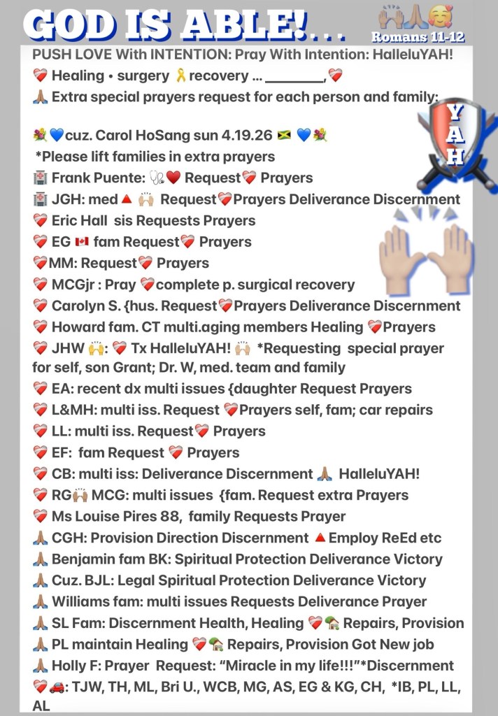 GOD HEARS You BeLOVED, Be ASSURED You Are BLESSED To Be A BLESSING! So Listen: SHAMA YAHUAH יהוה ELOHIM THE GIFT יהושע YAHUSHA THE MESSIAH Our SAVIOR SACRIFICED THE GUARANTOR GUARDIAN Of ETERNAL LIFE PEACE REST AGAPÈ LOVE Made Flesh ANOINTED CHOSEN BLESSED To Be A BLESSING! He More Than Gets your pain He Lived It, He PUSHED Through And Because Of CHRIST you can too! “Give thanks to יהוה! Call upon His Name, Make known His deeds among the peoples.” Tehillim (Psalms) 105:1 TS2009 HalleluYAH! BLESS HIS HOLY NAME. {*❤️“Come to Me, all you who labor and are heavy laden, and I will give you rest. Take My yoke upon you and learn from Me, for I am gentle and lowly in heart, and you will find rest for your souls. For My yoke is easy and My burden is light.”” Matthew 11:28-30 NKJV} 2 Corinthians 1:4 Who comforteth us in all our tribulation, that we may be able to comfort them which are in any trouble, by the comfort wherewith we ourselves are comforted of God. | Spiritual War Fact: we are in a Spiritual Battle (War, Conflict, Crisis) But a Crisis only shows up to show us where we Need The VICTORY In CHRIST our SAVIOR And ETERNAL LIFE The Spoil Of This War Be ASSURED You Are BLESSED To Be A BLESSING! : ““Thus says the Lord, the God of Israel, to you, O Baruch: ‘You said, “Woe is me now! For the Lord has added grief to my sorrow. {*Job 23:2 Even to day is my complaint bitter: my stroke is heavier than my groaning.*} I fainted in my sighing, and I find no rest.” ’ And do you seek great things for yourself? Do not seek them; for behold, I will bring adversity on all flesh,” says the Lord. “But I will give your life to you as a prize in all places, wherever you go.” ’ ”” Jeremiah 45:2-3, 5 NKJV | Hebrews 4:15 For we have not an high priest which cannot be touched with the feeling of our infirmities; but was in all points tempted like as we are, yet without sin. You Are BLESSED To Be A BLESSING Walk GOOD! Praise GOD!